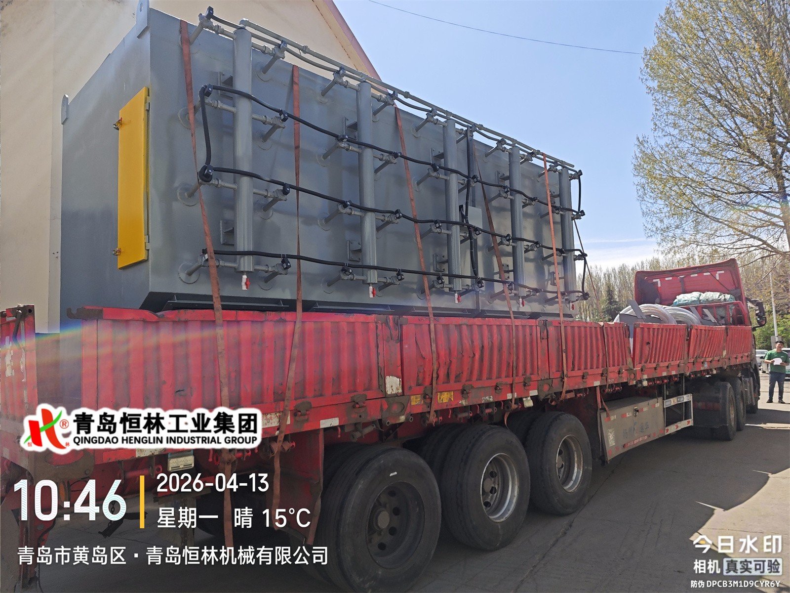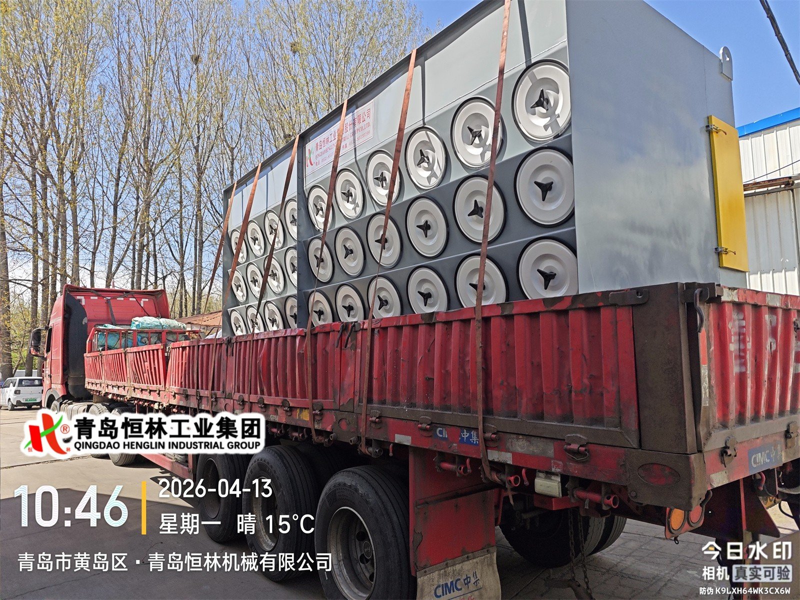 2026年4月13日,青岛恒林工业集团发中国中核集团烟台公司Q3525辊道通过式抛丸清理机第5车—环保除尘设备(共3套设备)。